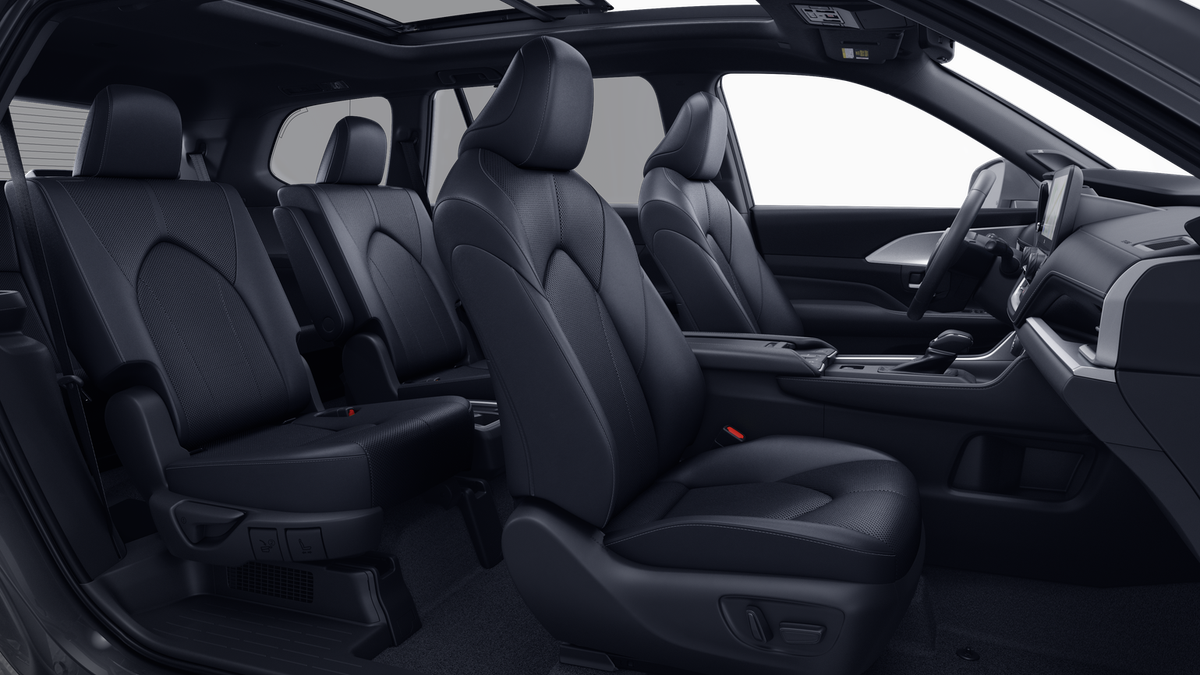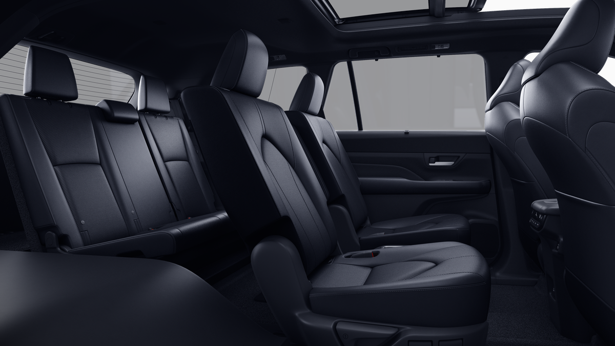 • 7-passenger seating with second-row fold-down captain's chairs and fold-down inboard armrests, adjustable headrests and two cup holders mounted on the floor; and 60/40 split, fold-down third-row seats with sliding headrests and recline function