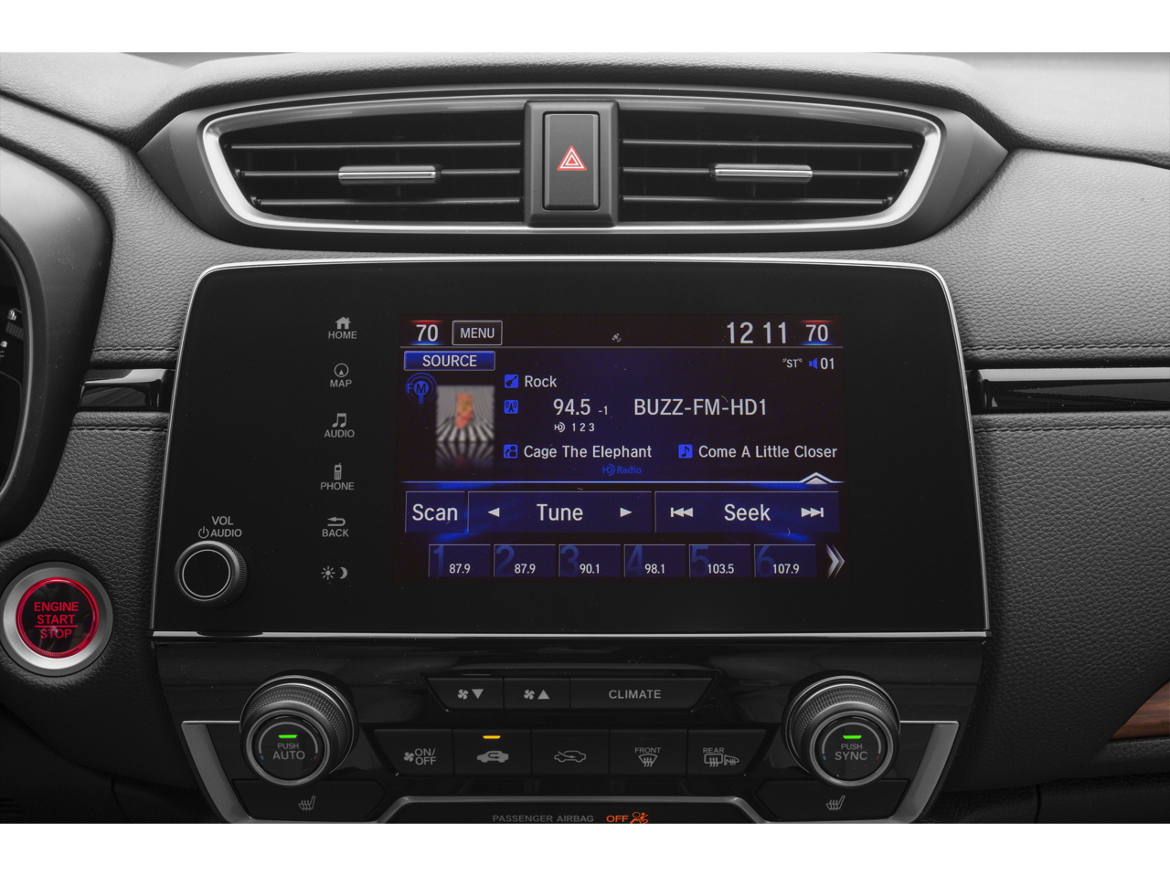 - Radio: AM/FM/HD/SiriusXM Audio System -inc: 330-Watts, 9 speakers including subwoofer, Honda satellite-linked navigation system w/voice recognition, HD digital traffic, turn-by-turn directions, 7" display w/high-resolution WVGA (800x480) electrostatic touch-screen, customizable feature settings, Bluetooth® streaming audio and HandsFreeLink, Pandora compatibility, Radio Data System (RDS), Speed-Sensitive Volume Control (SVC), USB audio interface w/1.0-amp port in center console, USB smartphone/audio interface w/1.5-amp port in center console, 12-volt power outlets (front and center console), HondaLink, Apple CarPlay/Android Auto, SMS text message function and 2.5-Amp charging ports in 2nd-row