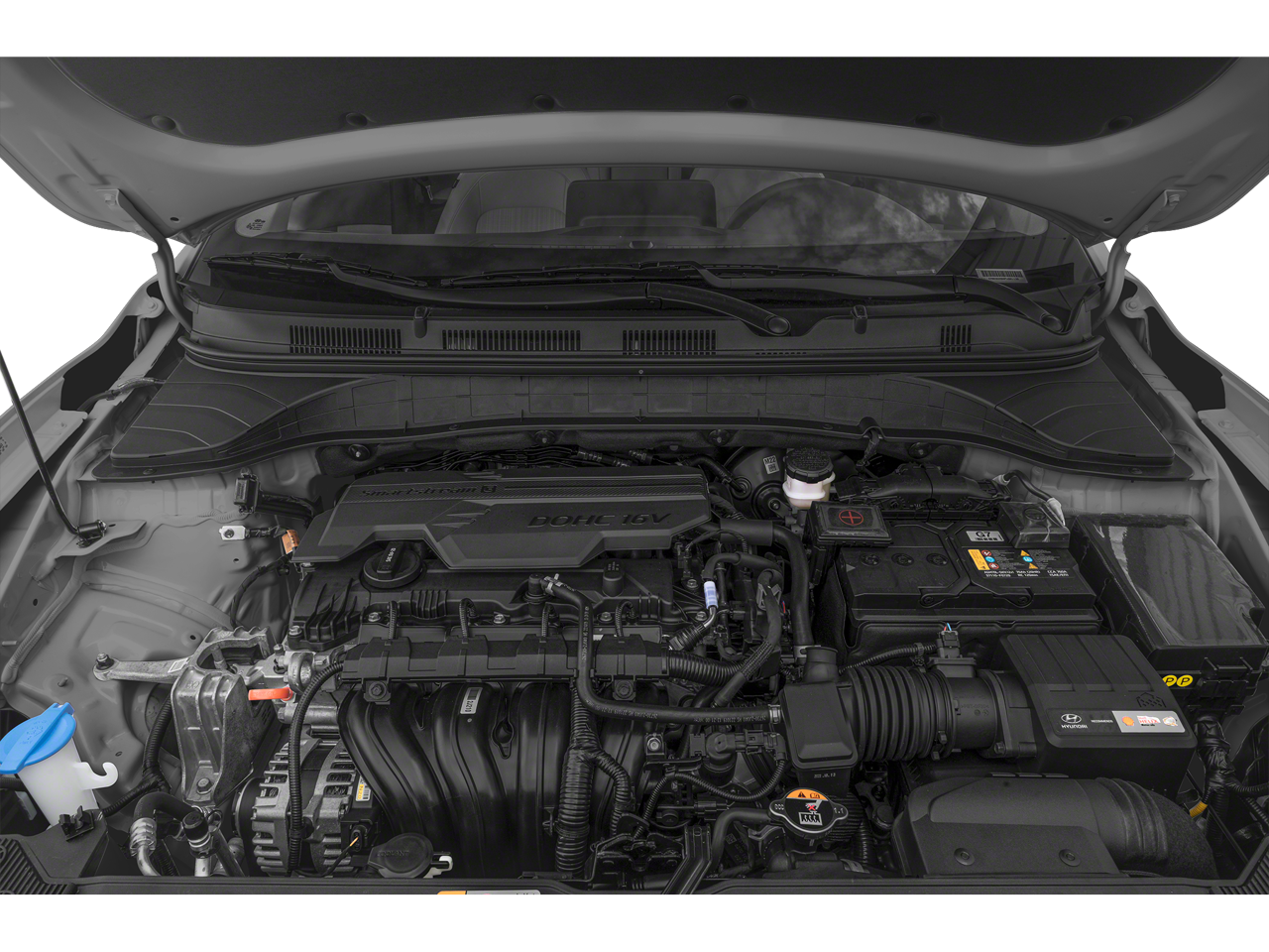 Option Group 01, Winter Weather Package (All-Weather Floor Mats and Front & Rear Mudguards), 17 x 7.0J Alloy Wheels, 4-Wheel Disc Brakes, 5.715 Axle Ratio, 6 Speakers, ABS brakes, Air Conditioning, Alloy wheels, AM/FM radio: SiriusXM, Apple CarPlay & Android Auto, Brake assist, Bumpers: body-color, Cargo Net, Cargo Tray, Cloth Seat Trim, Delay-off headlights, Driver door bin, Driver vanity mirror, Dual front impact airbags, Dual front side impact airbags, Electronic Stability Control, Emergency communication system: Blue Link Connected Car Service (3-year complimentary subscription), Exterior Parking Camera Rear, First Aid Kit, Four wheel independent suspension, Front anti-roll bar, Front Bucket Seats, Front Center Armrest, Front reading lights, Fully automatic headlights, Heated door mirrors, Illuminated entry, Low tire pressure warning, Occupant sensing airbag, Outside temperature display, Overhead airbag, Overhead console, Panic alarm, Passenger door bin, Passenger vanity mirror, Power door mirrors, Power driver seat, Power steering, Power windows, Radio: AM/FM/HD/SiriusXM Audio System, Rear anti-roll bar, Rear seat center armrest, Rear window defroster, Rear window wiper, Remote keyless entry, Security system, Speed control, Speed-sensing steering, Split folding rear seat, Spoiler, Steering wheel mounted audio controls, Tachometer, Telescoping steering wheel, Tilt steering wheel, Traction control, Trip computer, Turn signal indicator mirrors, and Variably intermittent wipers.